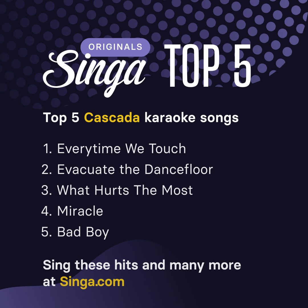Here are the top 5 Cascada songs based on data from karaoke singers using the Singa app. Plus, Cascada's original versions are available on Singa as part of our Merlin partnership, so that you can enjoy the best of independent music when singing karaoke at home or on the stage!