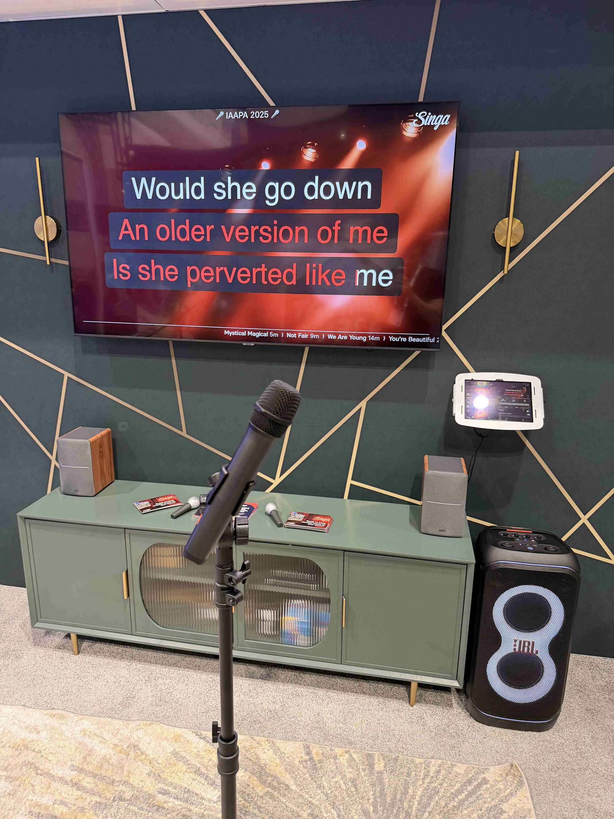 Our setup at IAAPA proved that you don’t need a massive construction budget to create a wow factor. With a budget of $1,400-3,500, you can build a professional, eye-catching karaoke room set-up that creates memorable experiences. By focusing on a strong visual theme and professional-grade software like Singa, you can provide a world-class experience at a reasonable budget.