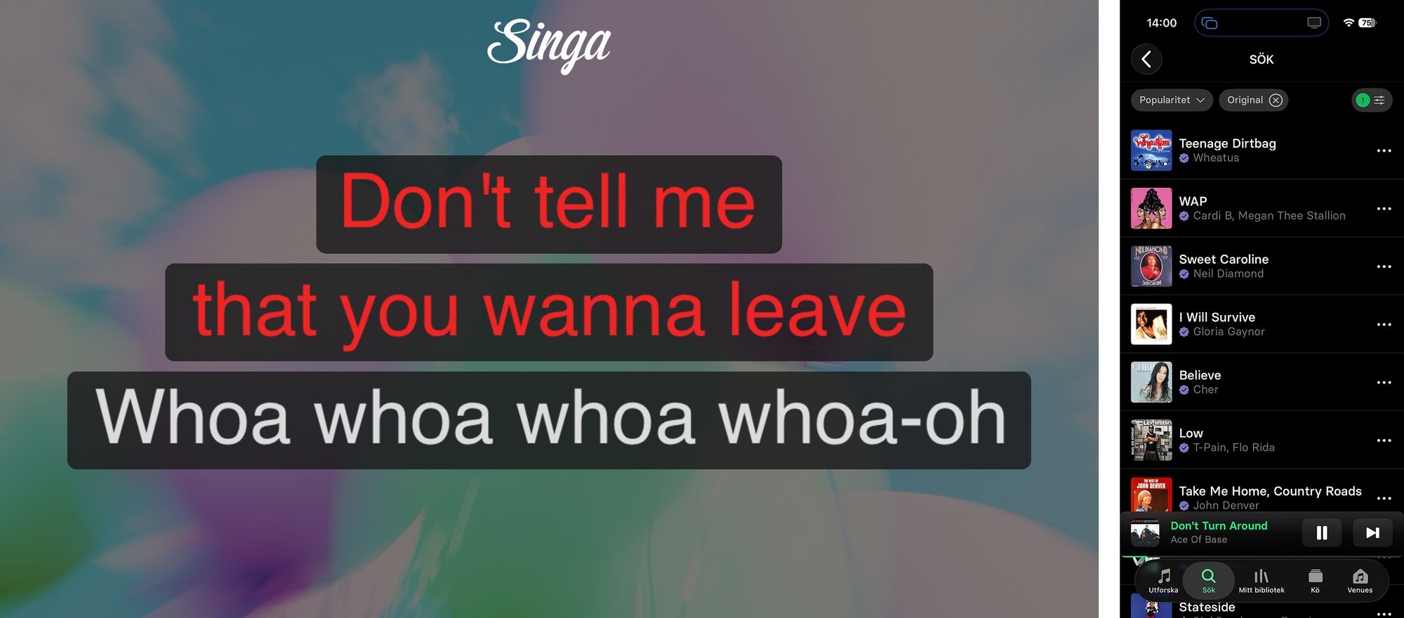 - Open Singa and play a song.
