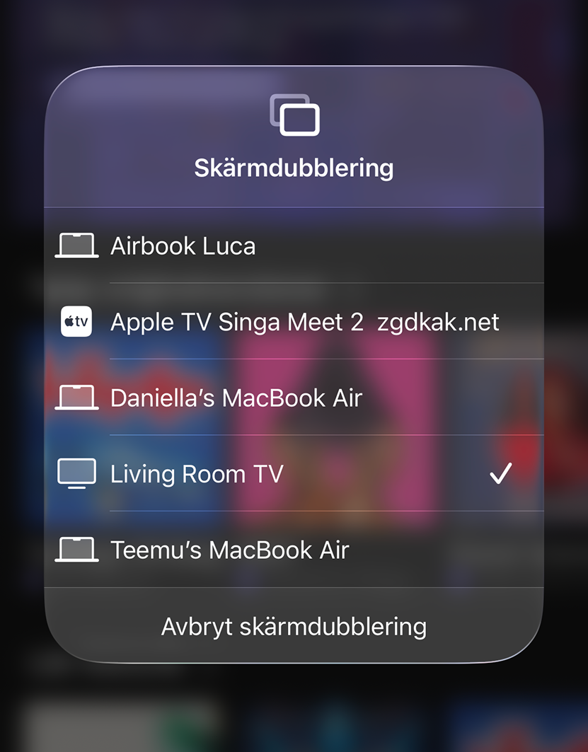 - Select your compatible TV or AirPlay receiver.